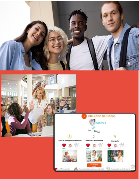 par l’apport et l’animation de ressources ludo-pédagogiques EdTech sur la connaissance de soi, l’orientation et le bien être mental